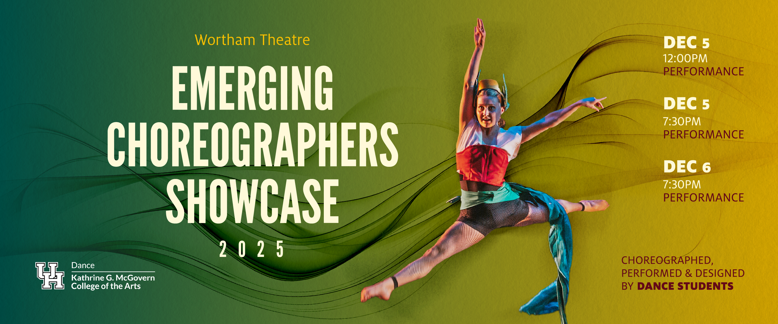 The School of Theatre & Dance presents Emerging Choreographers Showcase, an annual showcase featuring premiere dance works by students of the dance program. The entire evening is fully produced, choreographed, costumed, and designed by UH theatre and dance students to highlight their performance and production skills in a professional theater setting. Come see the stars of tomorrow – today!