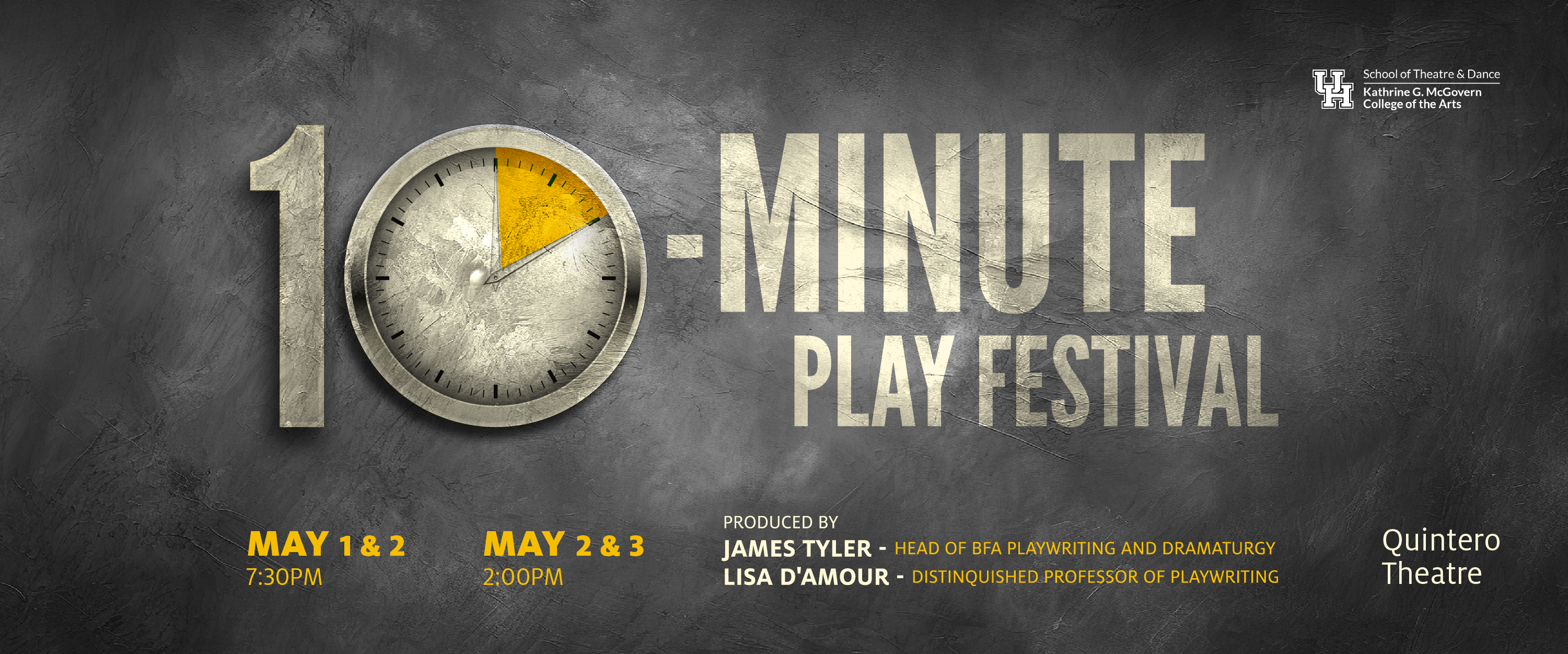 The School of Theatre & Dance is excited to present the 13th annual 10-Minute New Play Festival! This popular showcase highlights some of the best new work from our students.