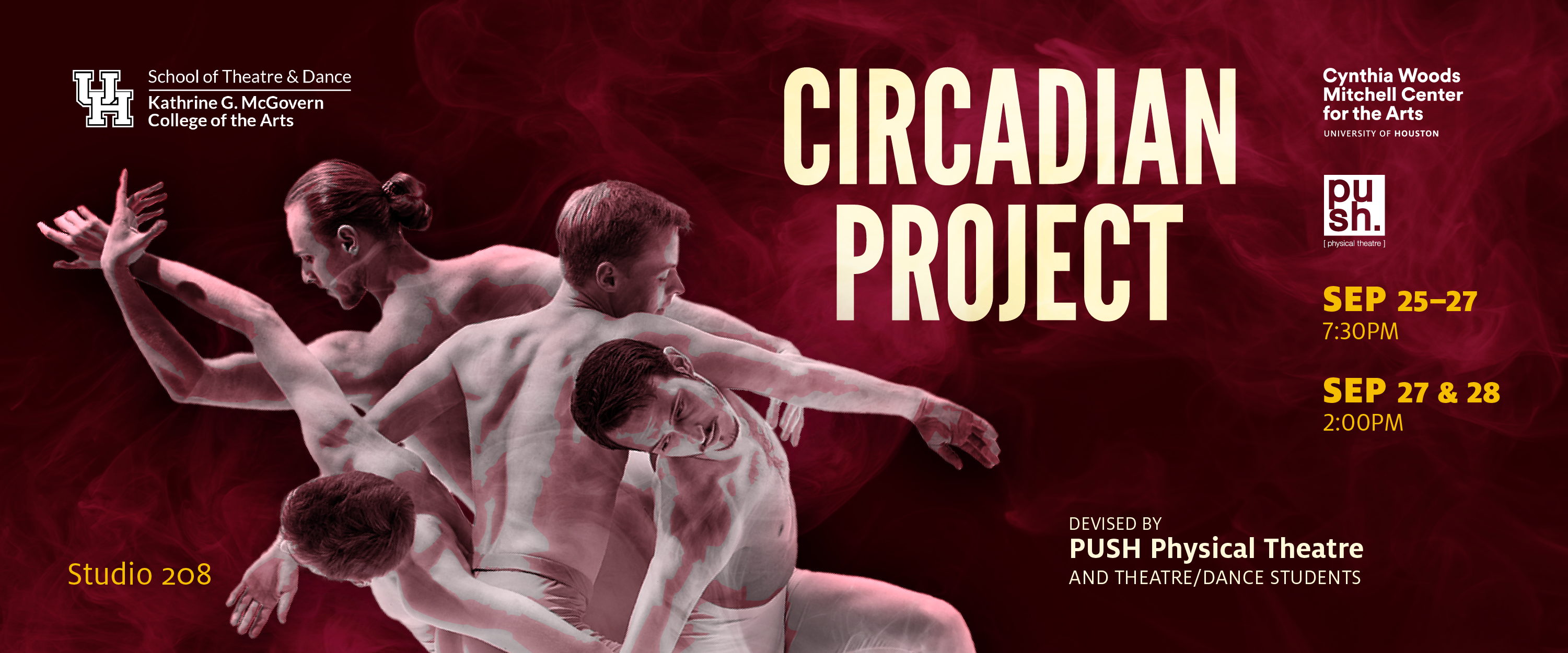 A world premiere embodied storytelling event that exemplifies the expression, “leap, and the net shall appear,” as our incoming MFA Acting cohort and select undergrads build a project like no other. In just over 100 hours of rehearsal, an entire play without words will be conceived, devised, and performed by PUSH Theatricals, and supported by the Cynthia Woods Mitchell Center for the Arts.