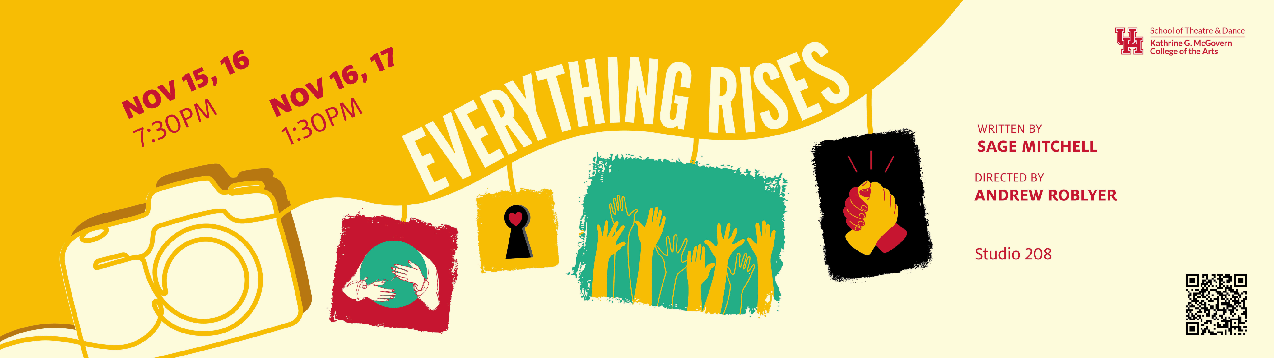 Everything’s calling Elliot back to Sherwood, Texas. Four years after the death of his best friend, Elliot returns home to give his statement. Through flashes from the past and connections in the present, Elliot faces the grittiness of his grief and finds hope along the way. Everything Rises is an exploration of queer love, life in a small town, found family, and what people are capable of when fueled by hate.