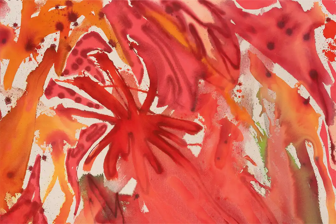 Saif Azzuz (b. 1987) is a Libyan-Yurok artist who resides in Pacifica, CA. He received a Bachelor’s Degree in Painting and Drawing from the California College of the Arts in 2013. Azzuz’s paintings straddle abstraction and surrealism in their sweeping use of color, sensual movement, and evocation of the natural world. His work revolves around the de-contextualization of Yurok and Arab imagery. Starting with stories by, of, and for family members, Azzuz constructs spaces utilizing colorful ink and acrylic paint on tapestry-like canvas imbuing the work with the washy luminosity and gentle disquiet of dreams. This exhibition includes new work co-commissioned by the Cynthia Woods Mitchell Center for the Arts.